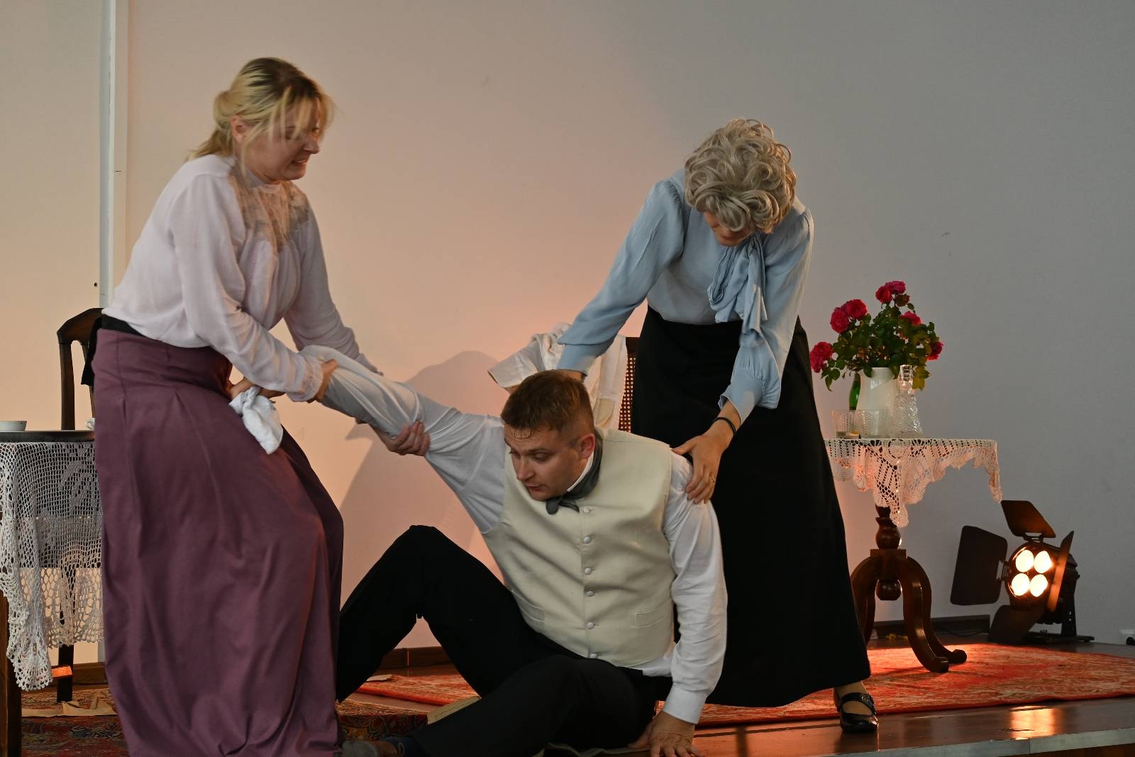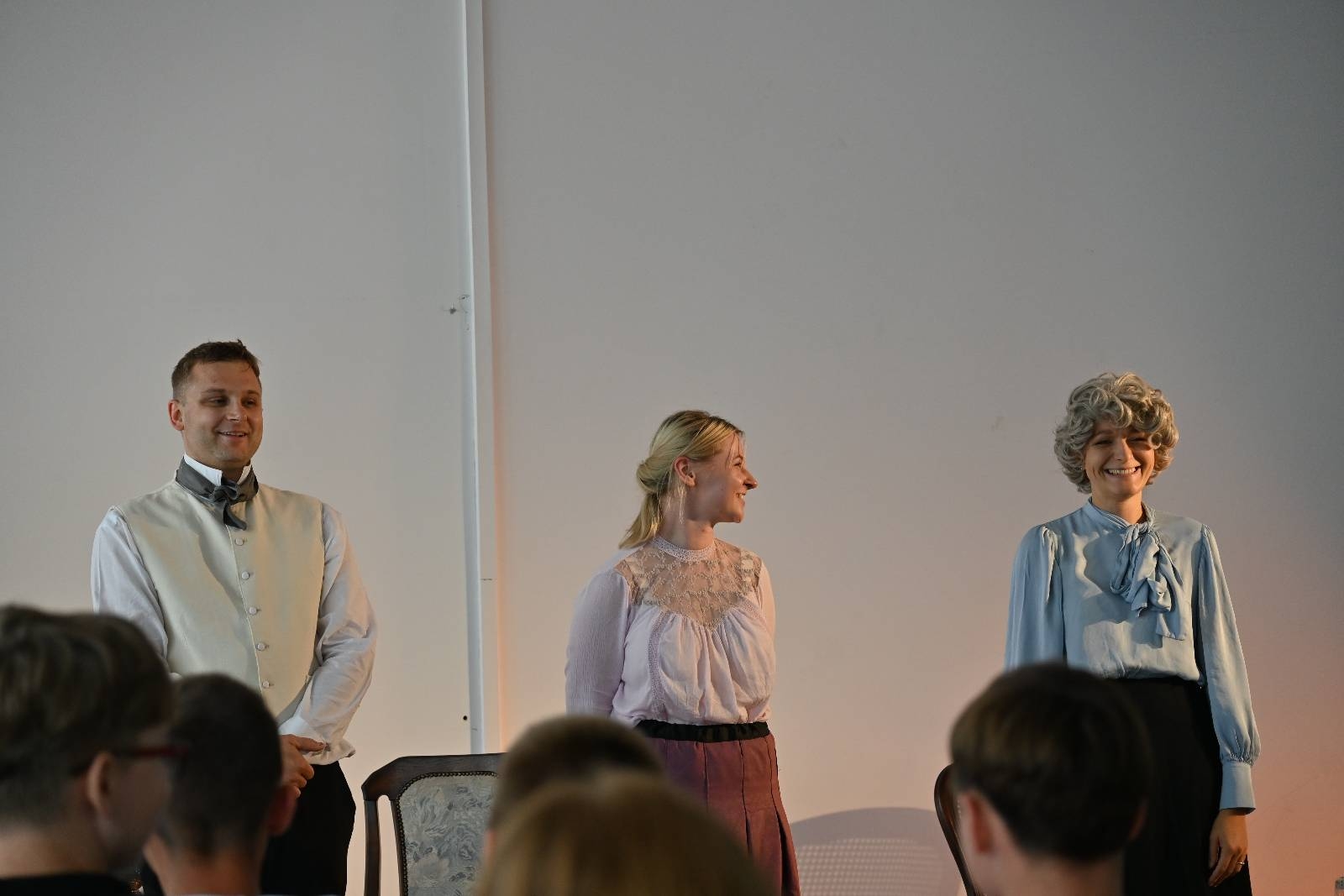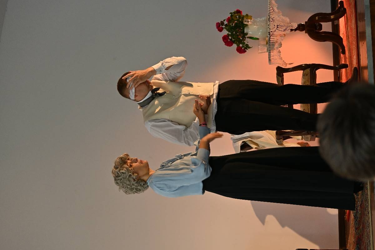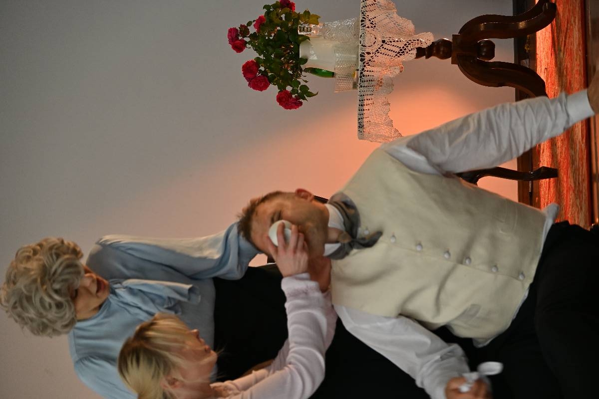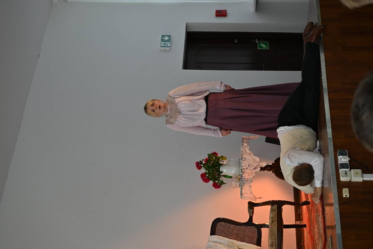 15 września 2025 r. uczniowie naszej szkoły mieli okazję obejrzeć spektakl „Divosnuby” (Oświadczyny) Antoniego Czechowa. Było to przedstawienie Teatru Czrevo w wykonaniu Joanny Troc, Magdaleny Taranty oraz Tomasza Taranty. Jednoaktówka, zagrana „po swojemu”, stanowi zabawną humoreskę obyczajową, ukazującą w krzywym zwierciadle życie podlaskiej prowincji z początku XX wieku. Warto dodać, że jedna z artystek – Magdalena Taranta – jest absolwentką naszej szkoły.