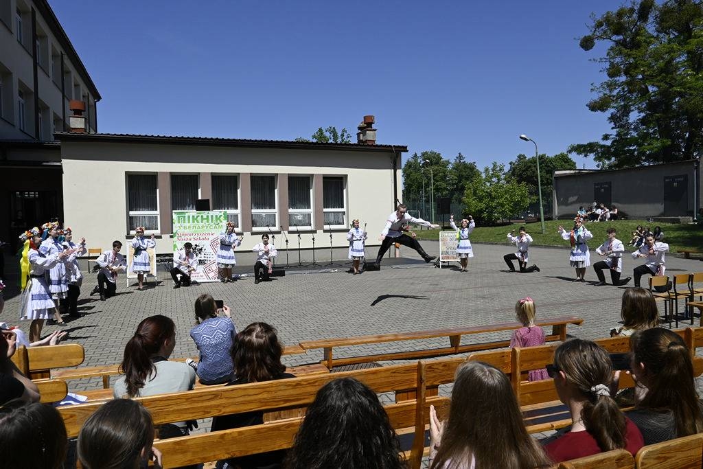 1 czerwca 2023 r. w naszej szkole odbyła się po raz dziesiąty impreza edukacyjno-kulturalna „Piknik z Białorusem”, której głównym organizatorem jest Stowarzyszenie Nasza Szkoła. Tym razem pogoda dopisała, więc i zabawa w plenerze była udana. W programie pikniku znalazły się występy przedszkolaków, uczniów szkół oraz zespołów młodzieżowych i osób dorosłych. Po przywitaniu, krótkich przemówieniach oficjeli oraz wymianie prezentów jako pierwsi przed publicznością zaprezentowały się dzieci z hajnowskich przedszkoli – Niepublicznego św. św. Cyryla i Metodego oraz Przedszkola nr 1. Następnie na scenie zagościli śpiewacy i tancerze z naszego „Białorusa”, Hajnowskiego Domu Kultury, a także Środowiskowego Domu Samopomocy w Hajnówce. W tym roku mieliśmy gości z zaprzyjaźnionych szkół w Puńsku oraz Wilnie, więc i oni pokazali na scenie swoje umiejętności artystyczne w tańcu i piosence. Na zakończenie z popularną muzyką białoruską wystąpiły dwa zespoły młodzieżowe „Wandrounik” i „Dawid Szymczuk Band”. Podczas pikniku przeprowadzono konkursy z nagrodami na temat białoruskiej mniejszości narodowej w Polsce. Wszyscy uczestnicy mogli się poczęstować potrawami z grilla, watą cukrową i popcornem.
