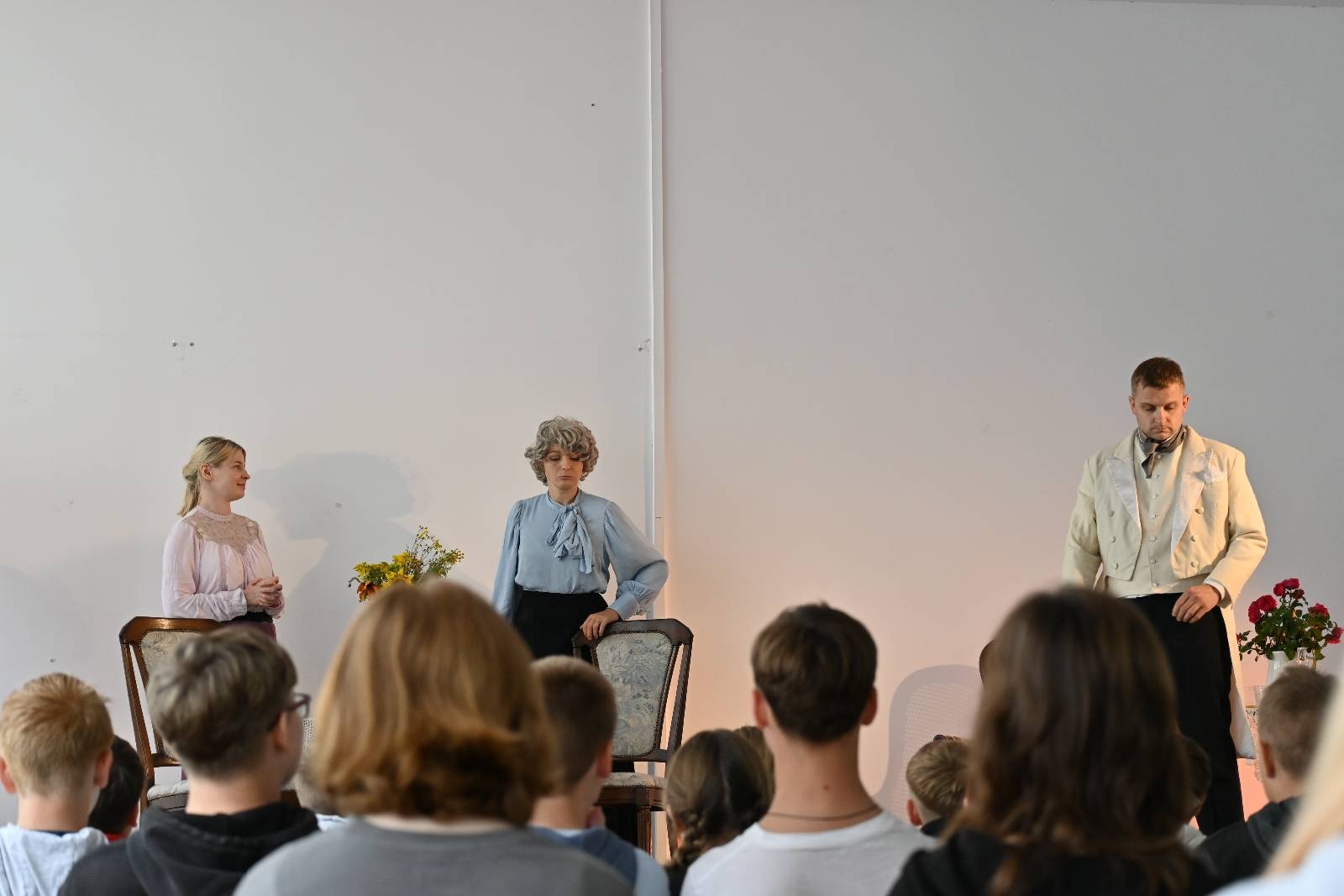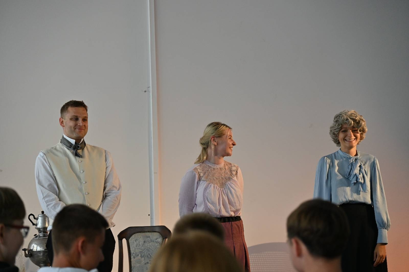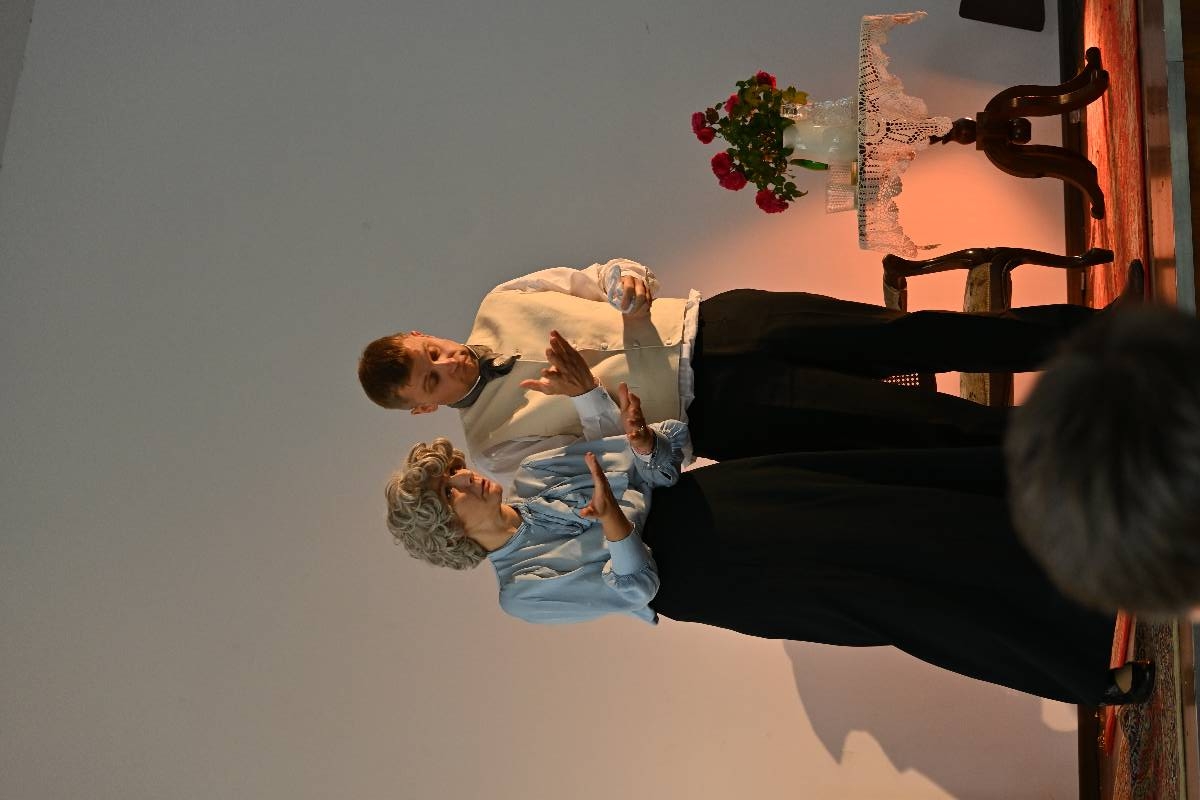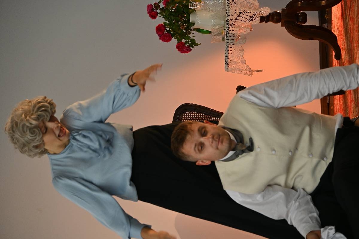 15 września 2025 r. uczniowie naszej szkoły mieli okazję obejrzeć spektakl „Divosnuby” (Oświadczyny) Antoniego Czechowa. Było to przedstawienie Teatru Czrevo w wykonaniu Joanny Troc, Magdaleny Taranty oraz Tomasza Taranty. Jednoaktówka, zagrana „po swojemu”, stanowi zabawną humoreskę obyczajową, ukazującą w krzywym zwierciadle życie podlaskiej prowincji z początku XX wieku. Warto dodać, że jedna z artystek – Magdalena Taranta – jest absolwentką naszej szkoły.