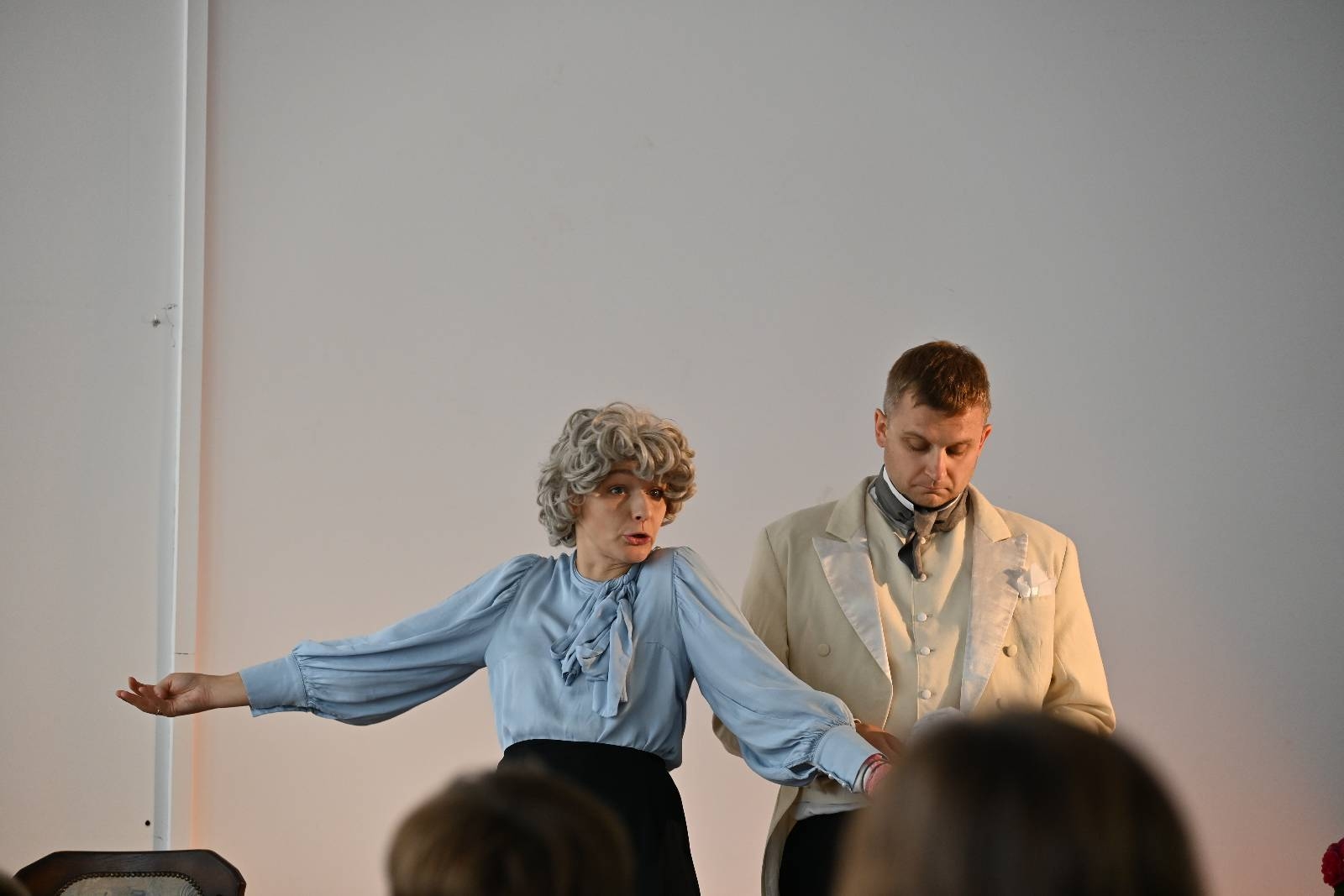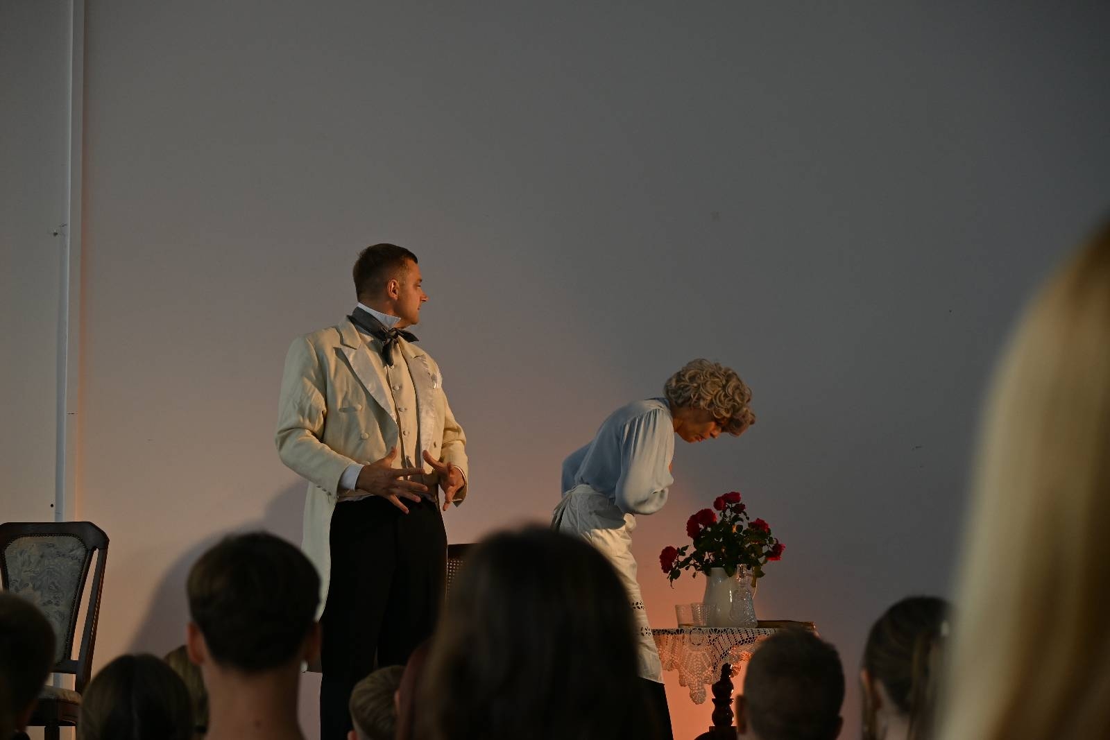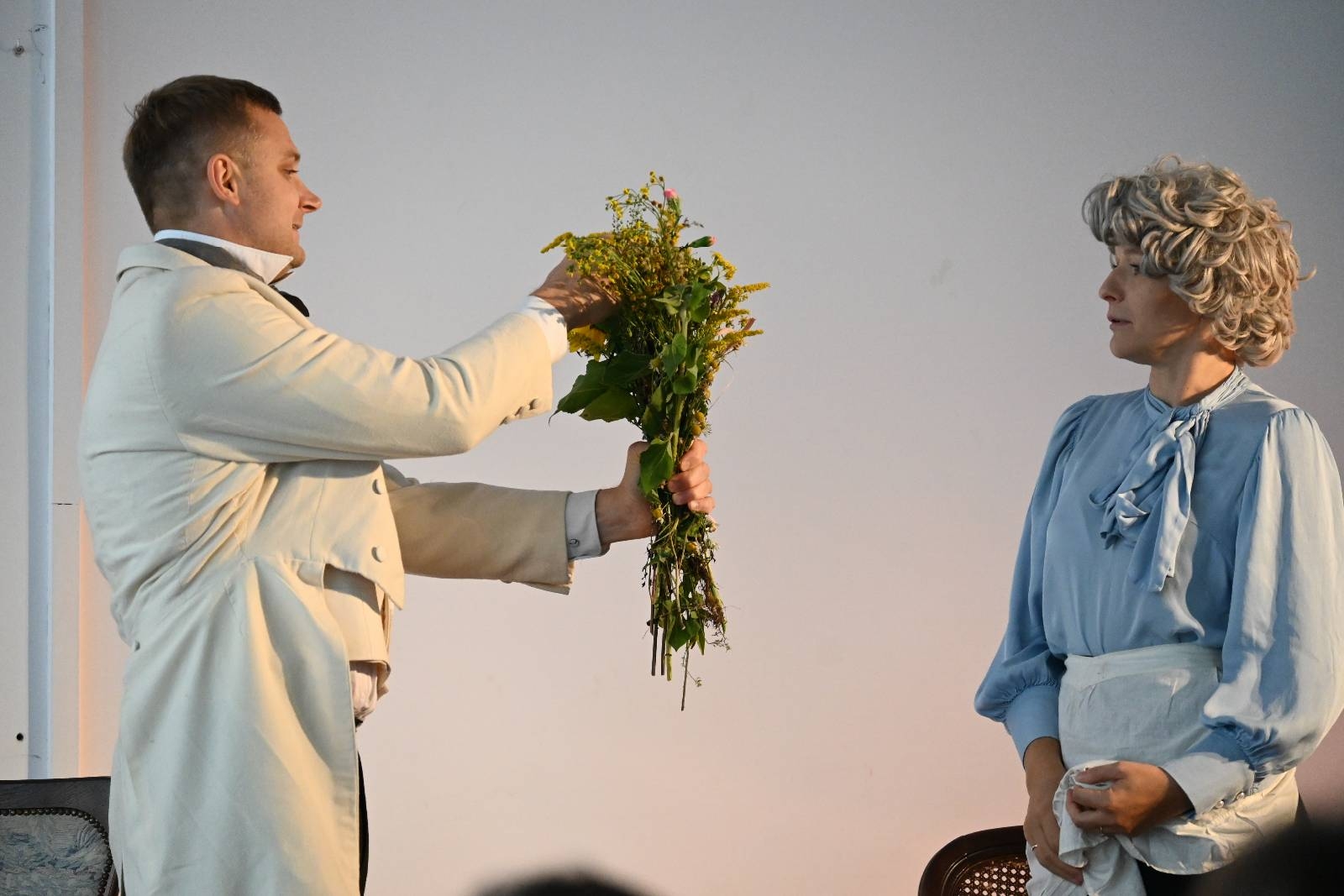 15 września 2025 r. uczniowie naszej szkoły mieli okazję obejrzeć spektakl „Divosnuby” (Oświadczyny) Antoniego Czechowa. Było to przedstawienie Teatru Czrevo w wykonaniu Joanny Troc, Magdaleny Taranty oraz Tomasza Taranty. Jednoaktówka, zagrana „po swojemu”, stanowi zabawną humoreskę obyczajową, ukazującą w krzywym zwierciadle życie podlaskiej prowincji z początku XX wieku. Warto dodać, że jedna z artystek – Magdalena Taranta – jest absolwentką naszej szkoły.