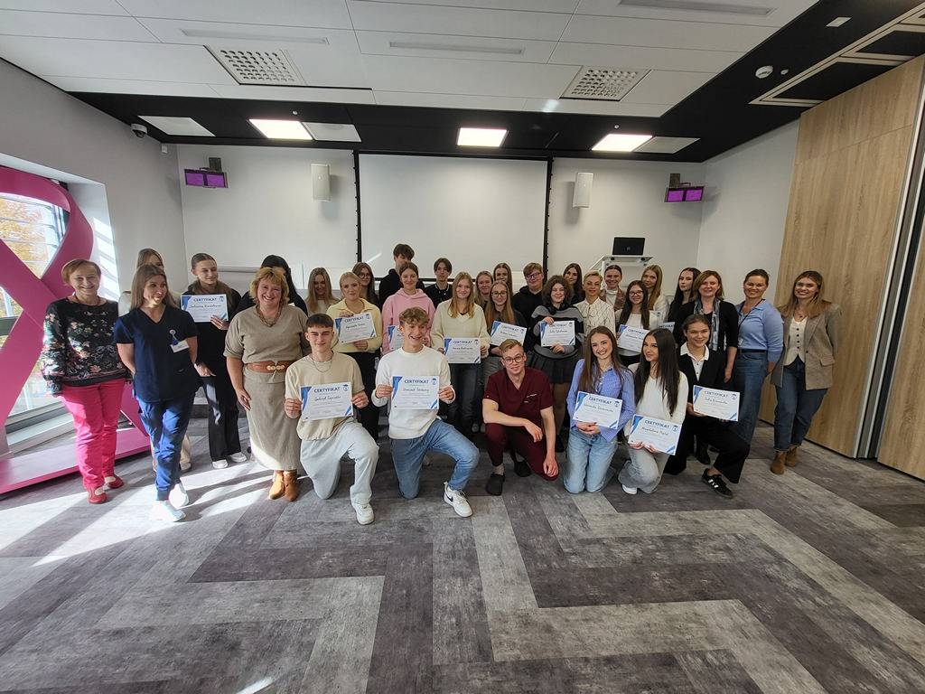 Od 14 listopada w naszej szkole odbywają się zajęcia prowadzone przez uczniów – edukatorów biorących udział w projekcie „Rak nie jest ot tak!”. Niezbędną wiedzę zdobyliśmy podczas szkolenia w Białostockim Centrum Onkologii. Mieliśmy okazję poznać pasjonatów z ogromną wiedzą i łatwością jej przekazywania. Poczuliśmy, że robimy coś ważnego i z takim przekonaniem rozpoczynamy lekcje rówieśnicze.